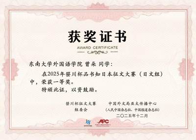 近日,“2025年笹川杯品书知日本征文大赛”(笹川杯本を味わい日本を知る作文コンクール2025)圆满落幕。我院2023级日语系...