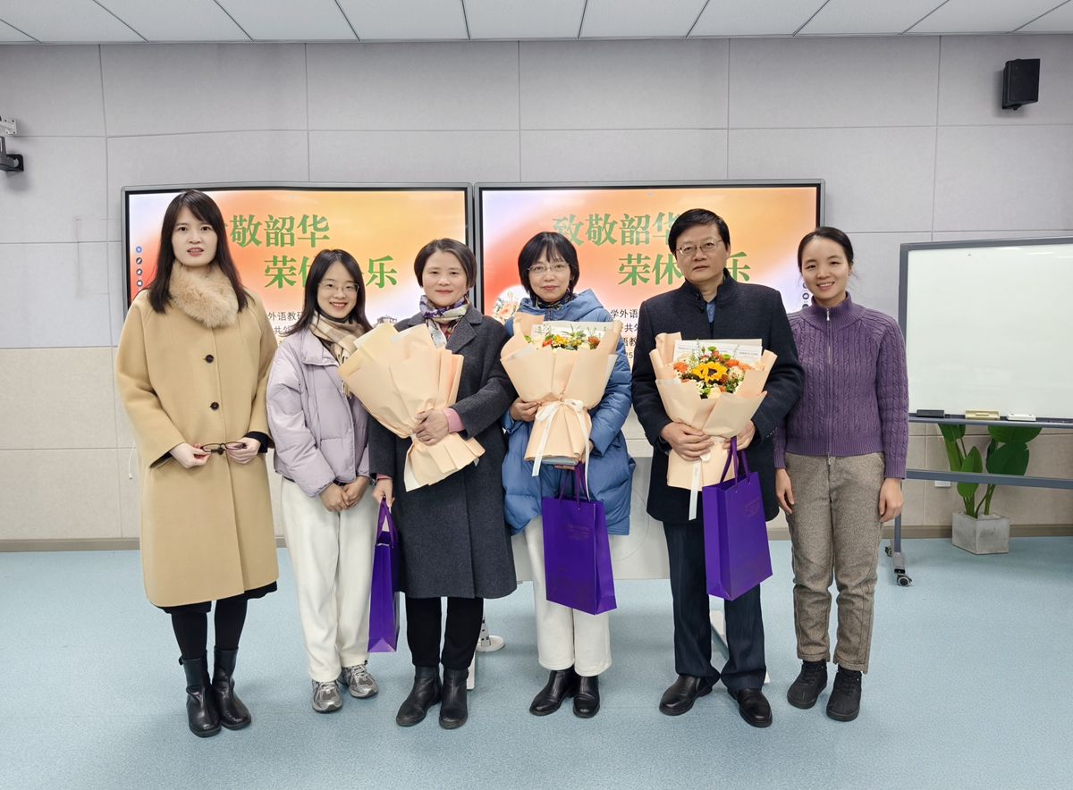 仪式上,三位青年教师向荣休教师敬献鲜花,全体教师共同向荣休教师表达诚挚祝福。最后,与会人员合影留念,仪式在温馨的氛围中圆满结束。