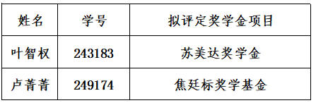 根据选拔要求和评审工作安排,经学生自主报名、学院评审小组审核评选,必威betway西汉姆拟推荐叶智权等2名同学申报bw必威西汉姆联2026年春季教育基金会研究生奖助学金,后附具体名单。